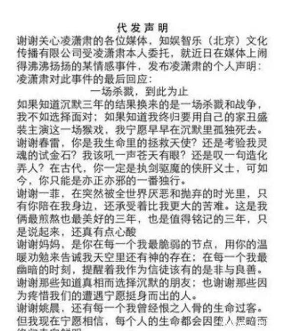 凌潇肃也不希望事情变得一团糟,因此他在声明中明确表示了自己的立场:这是一次血腥的屠杀,至此结束。”“至此,一切都结束了,感谢大家的围观。”
